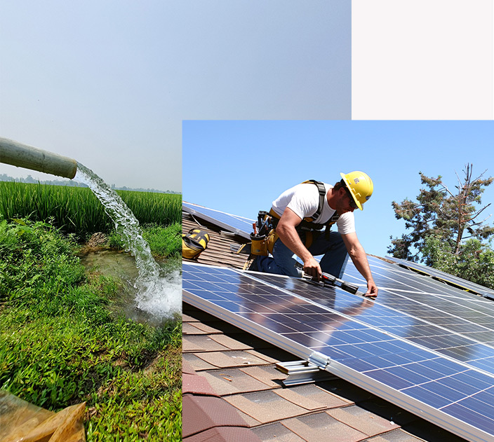 Drip and sprinkler systems can be connected with the solar system to further improve crop yield